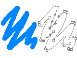 Hier noch eine kurze Definition des Begriffes Vektorgrafik. Im Gegensatz zu pixelorientieren Grafiken wird hier eine Linie bzw. eine Kurve durch einen Anfangspunkt, evtl. mehrere Zwischenpunkte und einen Endpunkt sowie die Linienstärke definiert. Die Verbindung zwischen diesen Punkten wird berechnet und ergibt dann den Strich. Bei Flächen wird neben der Linie auch noch die Art der Füllung definiert. Diese Technik wird Vektorisieren genannt. . Rastergrafik Vektorgrafik![]()